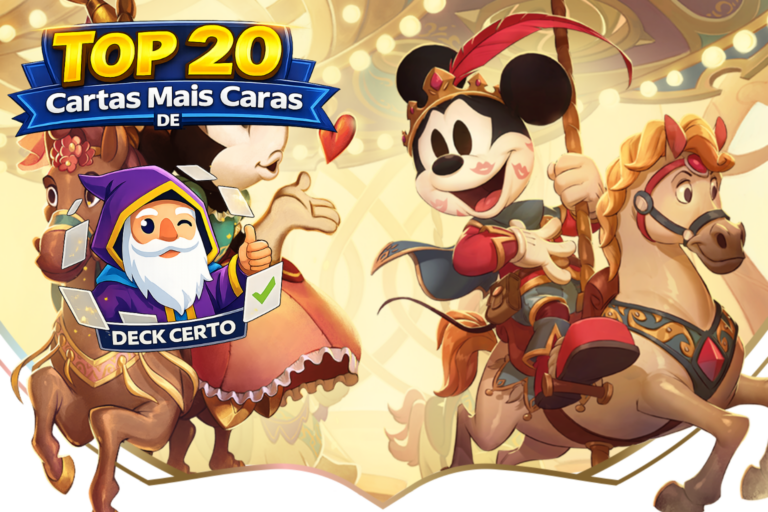 Confira nossa lista completa para descobrir quais cartas estão valorizando no mercado. Use essas informações para tomar decisões inteligentes sobre suas cartas de Disney Lorcana. Se você gosta de rankings de cartas valiosas, confira também as cartas mais caras de Winterspell Disney Lorcana e as cartas mais valiosas de Fabled Disney Lorcana. Vamos ao ranking das cartas mais caras!